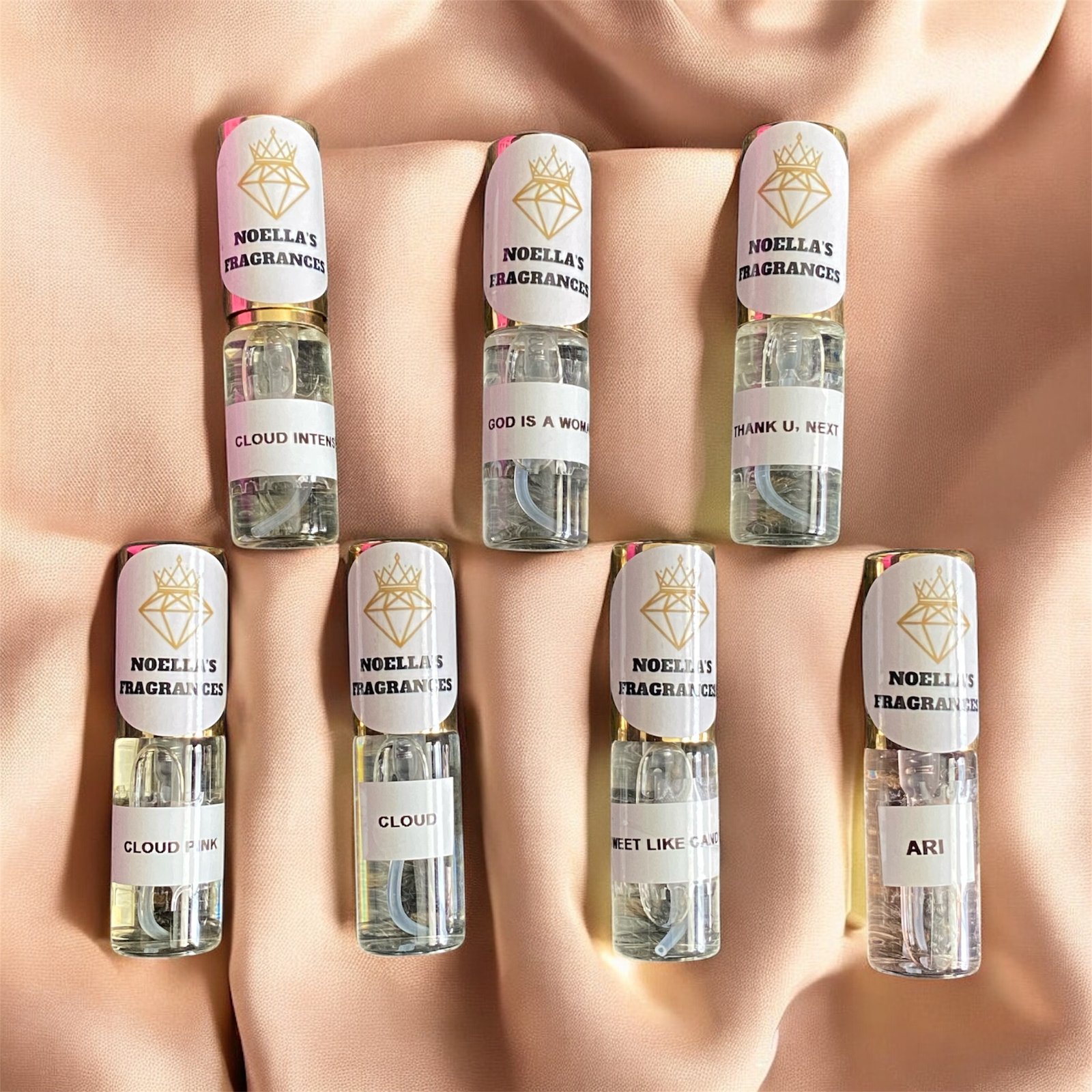 Ariana Grande Fragrances. Ari, Cloud, Cloud Intense, Pink Cloud, God Is A Woman & Thank You, Next. 5ml spray atomizer. 100% genuine fragrance. Holds 110-120 sprays. Small enough to carry in your handbag.