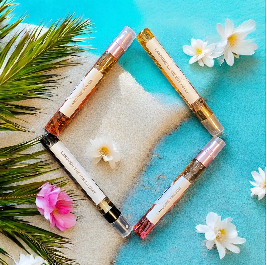 Lancome Fragrances 10ml spray atomizer. La Vie Est Belle, Poeme, Tresor and Tresor La Nuit. 100% genuine fragrance. Holds 140-160 sprays. Small enough to carry in your handbag.
